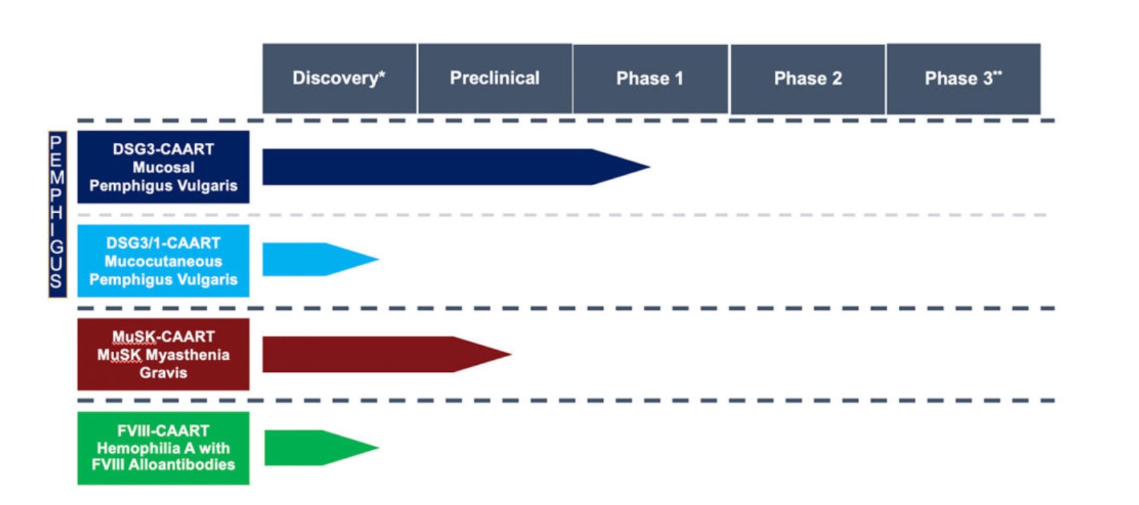 2020年底,预计启动一项针对复发或难治性粘膜寻常天疱疮(mPV)患者的临床I期试验。mPV是一种慢性自身免疫性疾病,会导致全身出现疼痛的水泡,而且无法治愈。