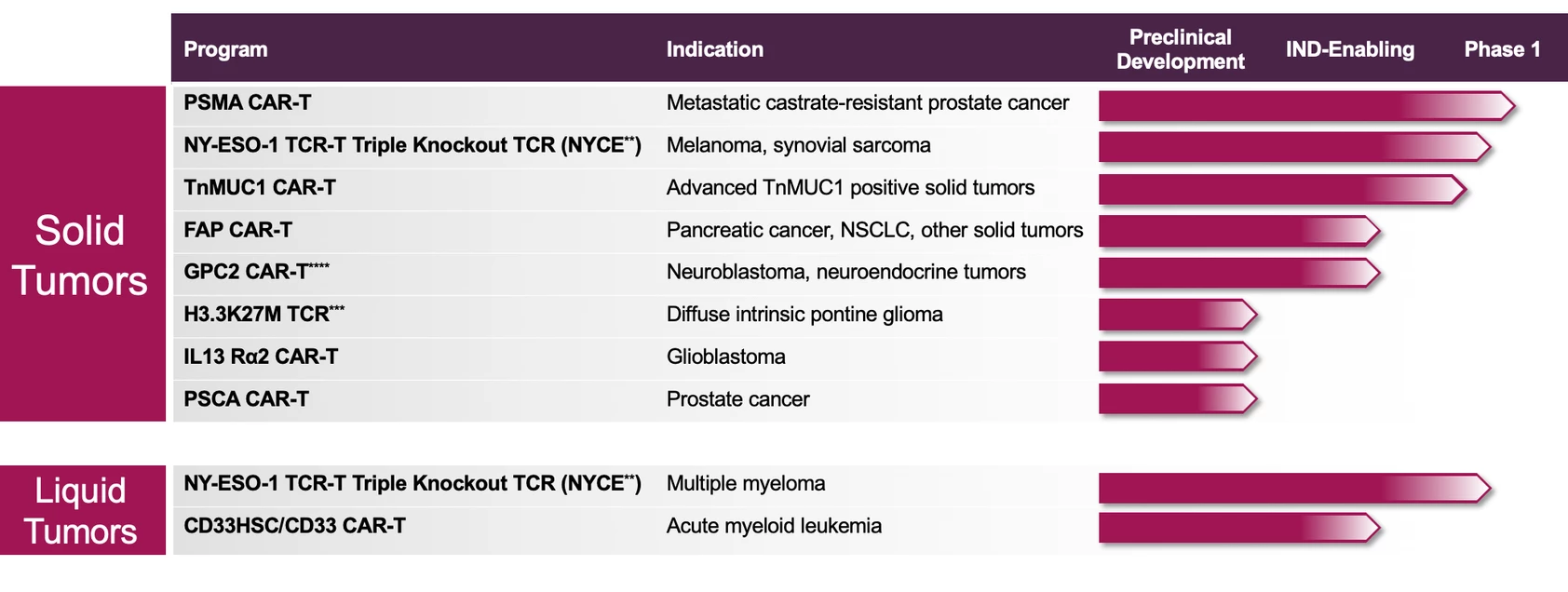 Tmunity的核心是不懈地致力于通过整合T细胞的发现,开发和生产能力来创建专有产品。目前,它与宾夕法尼亚大学(UPenn)建立了广泛的独家研发合作和许可协议,涉及肿瘤学,传染病和自身免疫性疾病的T细胞疗法领域。该公司拥有多达10个研发管线项目,8个项目针对实体肿瘤。