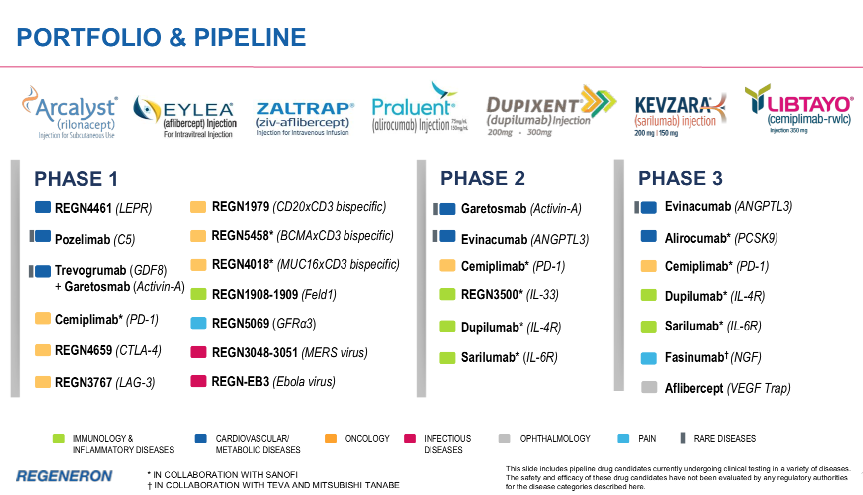 Regeneron Pharmaceuticals(NASDAQ:REGN)是一家全球领先的生物医药公司,总部位于美国纽约,全职雇员超过7000人,致力于为重疾患者研发能改变生命的药物。这家由科学家创立和领导的公司,30多年来持续不断地将科学研究转化为药物,迄今已有7个药物获得FDA批准上市并拥有众多在研候选产品,所有这些产品均为自主研发。Regeneron的产品管线覆盖眼科、过敏性和炎症性疾病、癌症、心血管和代谢性疾病、疼痛、传染性疾病和罕见病等治疗领域。