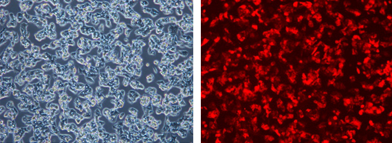 | 人宫颈癌细胞 | HeLa-RFP-Puro | DMEM+10% FBS+2ug/ml Puromycin | 中科院 |