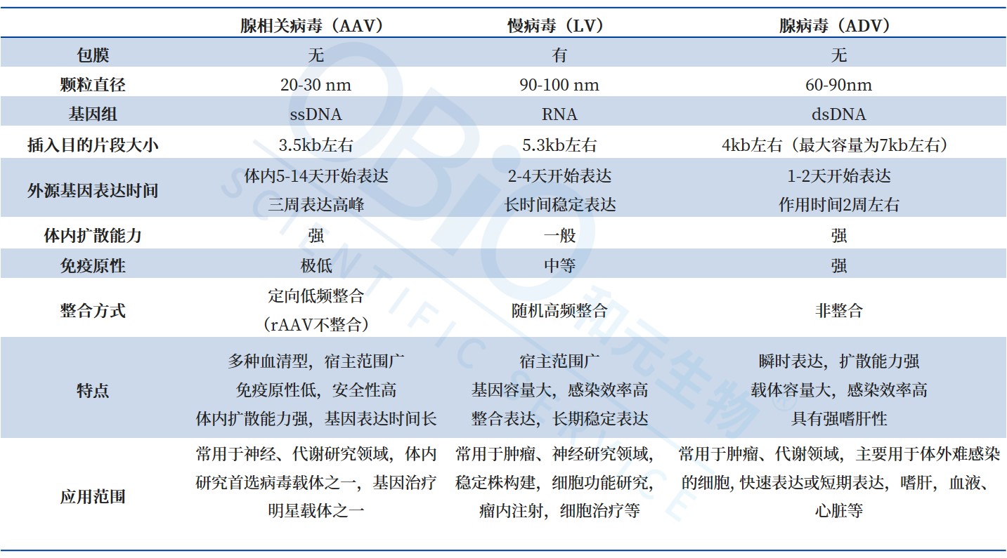 ◆体内应用时,慢病毒载体的应用不如rAAV载体应用广泛,因为其具有一定的免疫原性,且随机整合特性可能导致细胞功能基因的异常。相比较腺相关病毒,慢病毒的扩散范围较小,但其表达更快、基因容量更大(可容纳4kb),可作为大容量基因的载体。