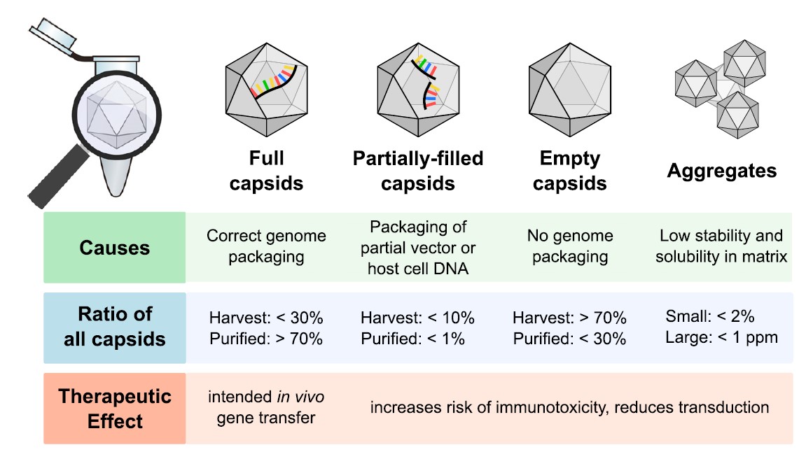 此外,还存在一定比例的含有部分DNA的病毒颗粒,DNA过度装载的病毒颗粒,以及rAAV多聚体(图1)。