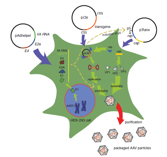 图1 三质粒转染293细胞生产rAAV
