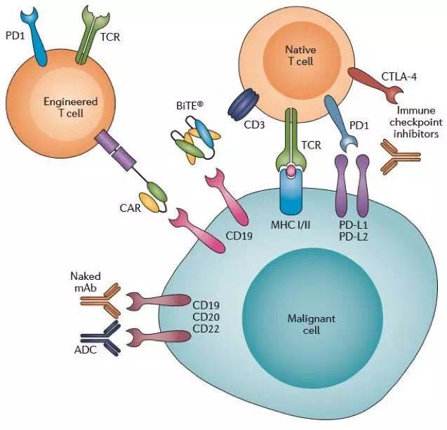 目前,B淋巴细胞血液恶性肿瘤的免疫疗法主要有CD20和CD19两个靶点的单克隆抗体(单抗)疗法、双抗和CAR-T疗法,其中,市场份额最大的是已上市20多年的抗CD20的利妥昔单抗,2019年全球销售额仍接近70亿美元。