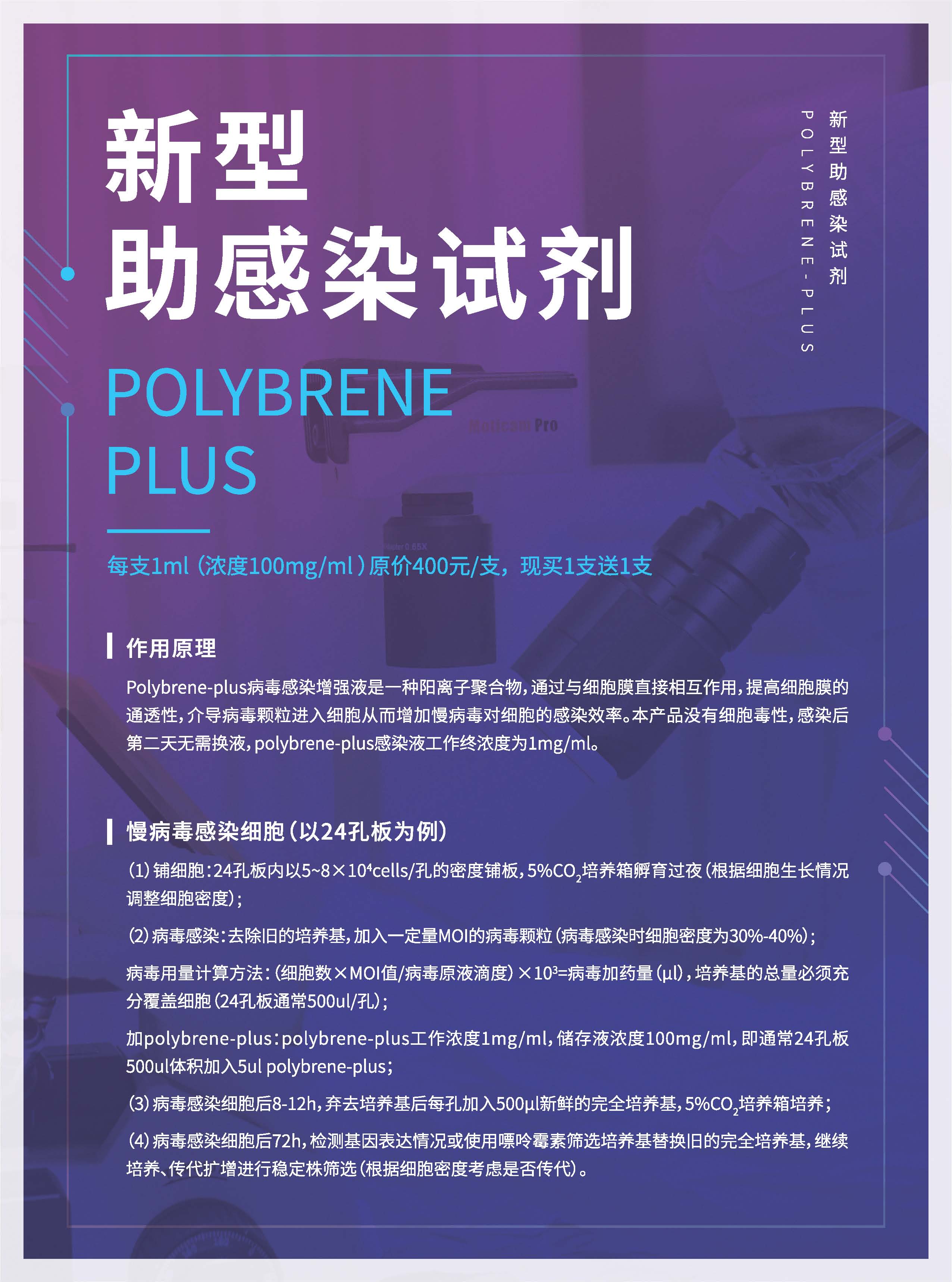 1、增强病毒的感染效果,节省病毒用量,适用细胞范围广;