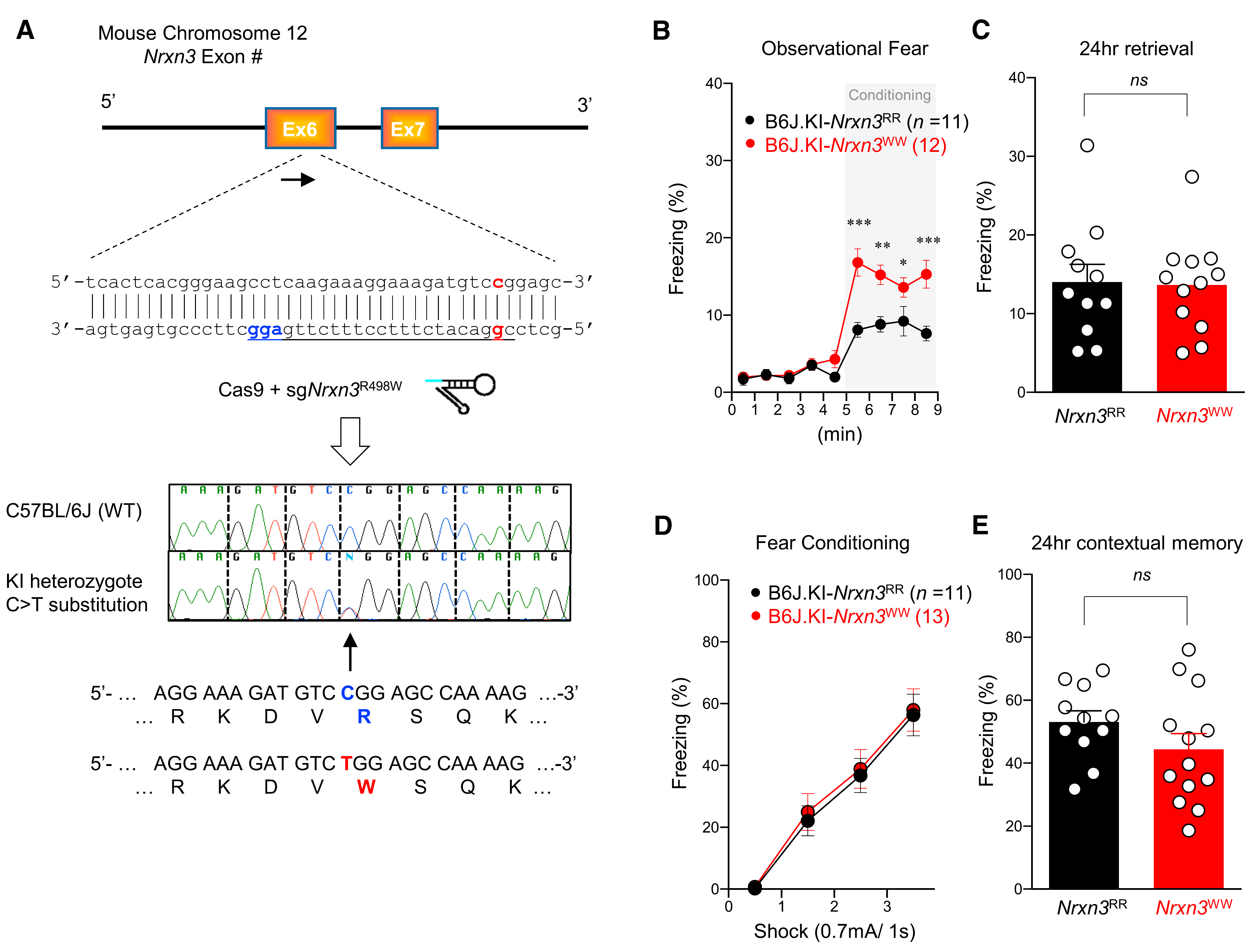 1.Nrxn3基因R498W突变增加恐惧共情反应程度