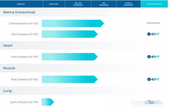 4DMT公司研发管线分布(来自4DMT公司官网)