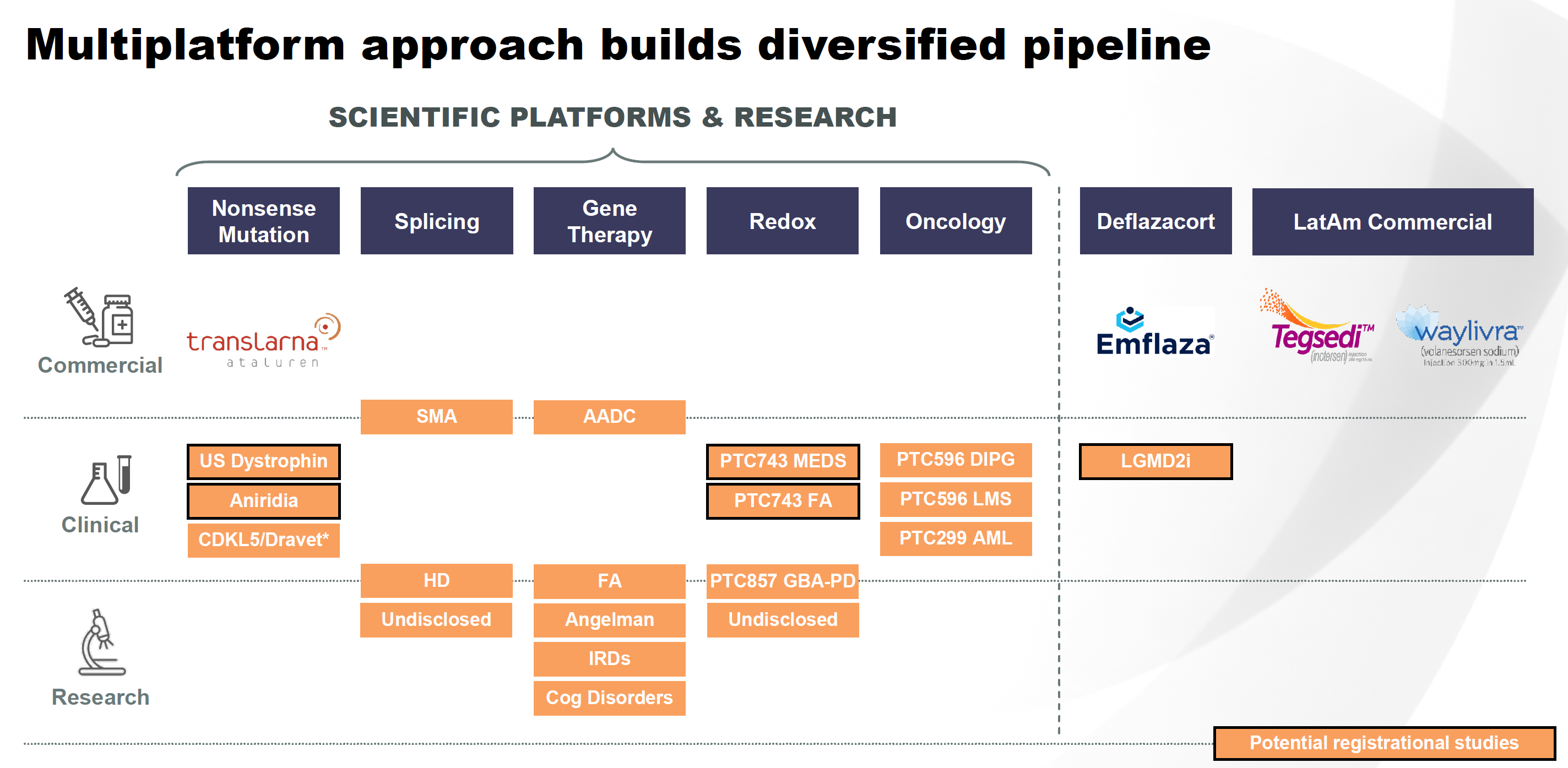 PTC Therapeutics股份有限公司是一家生物制药公司,成立于1998年,总部位于美国新泽西州South Plainfield,雇员超过511人。通过收购和全球制药公司合作,PTC Therapeutics从小分子化合物到基因治疗疗法开发,致力于治疗罕见病的药物开发和商业化。