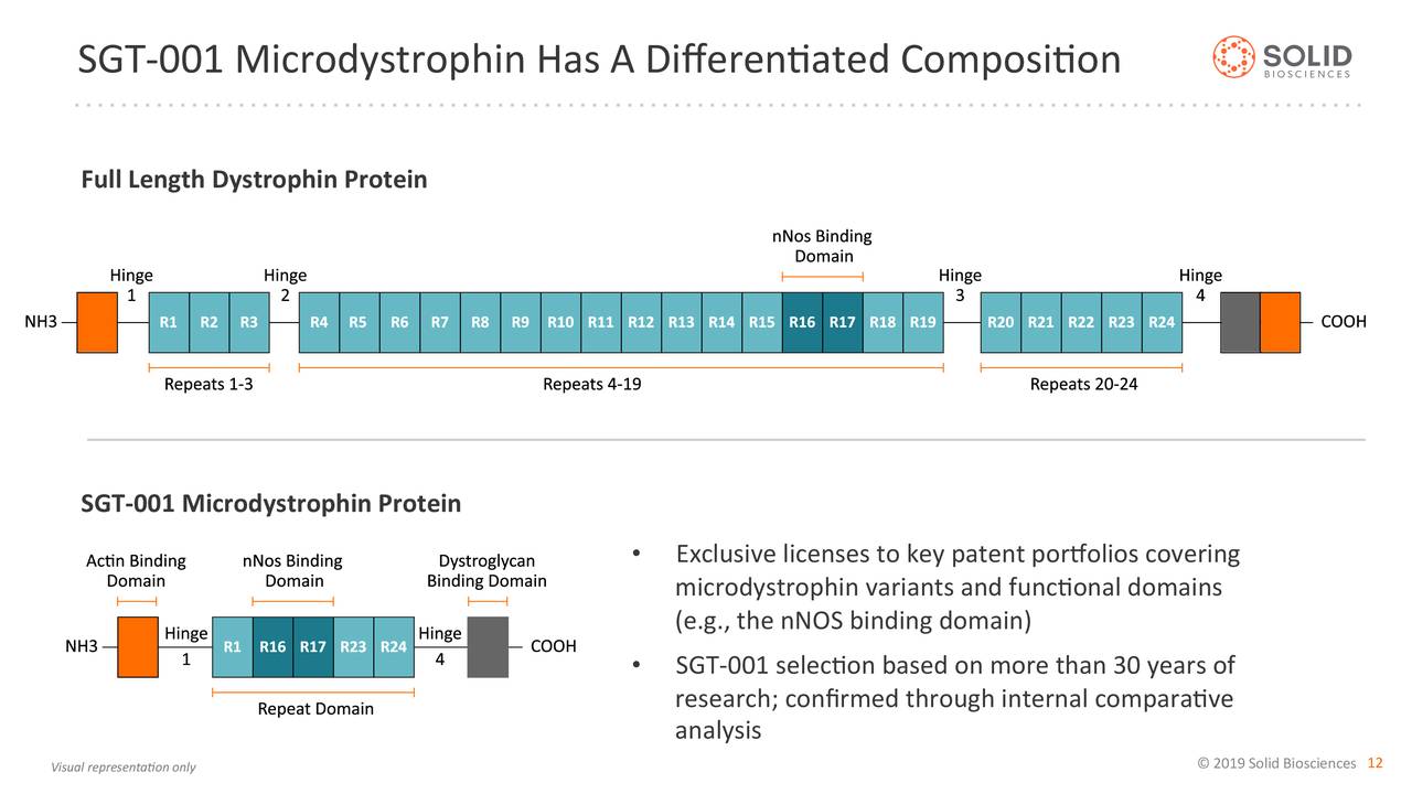 SGT-001是系统给药、治疗DMD的候选基因治疗药物,负责将外源Microdystrophin基因传递到体内。该基因编码一种在肌肉中表达的功能性蛋白替代物,并稳定必要的相关蛋白,包括神经元一氧化氮合酶(nNOS)。Solid临床前试验数据表明,无论基因突变或疾病阶段如何,SGT-001都有可能减缓或停止Duchenne的进展。目前,SGT-001已被授予美国和欧盟的孤儿药物认定。