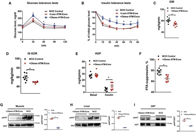图 2. 含有Exos的肥胖ATM-miRNA导致胰岛素抵抗