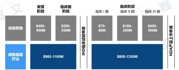 细胞和基因疗法在发现和临床前阶段的研发费用在9亿美元至11亿美元,临床阶段的费用在8亿美元至12亿美元。对于药企来说,往往没有积累足够的CGT研发经验,也没有配套的生产厂房,因此在基因疗法和细胞疗法研发领域,对于利用专业的CDMO团队以降低成本的需求很高。CDMO同时具备定制研发能力和生产能力,能够提供从临床前研究到商业化生产的一体化服务,在行业、精细分工日益明晰的当下,将部分研发及生产外包给专业CDMO企业可以显著减小原研药成本,而CDMO也就成为了研发企业的长期合作伙伴。