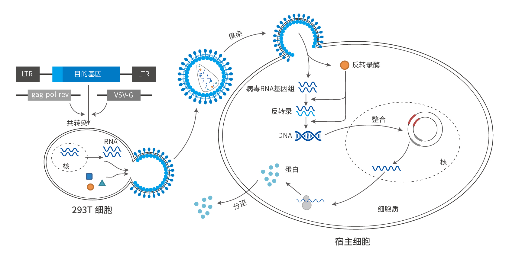 CGT主要是将外源正常基因导入靶细胞,以纠正或补偿缺陷和异常基因引起的疾病,从而达到治疗的目的。载体(Vector)作为基因疗法的递送系统,可以帮助完成基因的递送过程。载体包括病毒载体和非病毒载体。非病毒载体主要指质粒载体,是基因工程中最常用、最简单的载体,可将外源目的基因携带至受体细胞内表达。病毒载体则利用了病毒侵染目的细胞、传送基因组进入细胞表达的分子机制,更常被应用于基因疗法或细胞疗法对细胞基因组的编辑过程中。常见的病毒载体包括慢病毒载体、腺病毒载体、腺相关病毒载体和逆转录病毒载体等,再根据病毒载体启动子、荧光、抗性、标签的不同设计又可构建多种多样的治疗性基因载体产品。因此,选择合适的载体、设计最优的目的基因表达方式,成为CGT疗法研究中的重要课题,也是CDMO产业最为关注的核心竞争力。