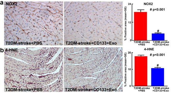 Fig.5 CD133+Exo处理可显著降低T2DM卒中小鼠的心脏氧化应激