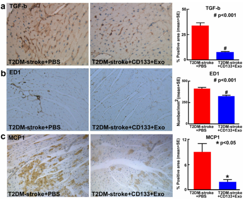 Fig.6a-c CD133+Exo处理可显著降低T2DM卒中小鼠的心脏炎症反应