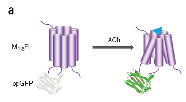 这一系列神经递质探针原理类似,都是基于人源神经递质受体,其原理在于把cpEGFP嵌入特定的神经递质受体,受体与神经递质结合后会引发受体构象改变转换为荧光信号(图10)。