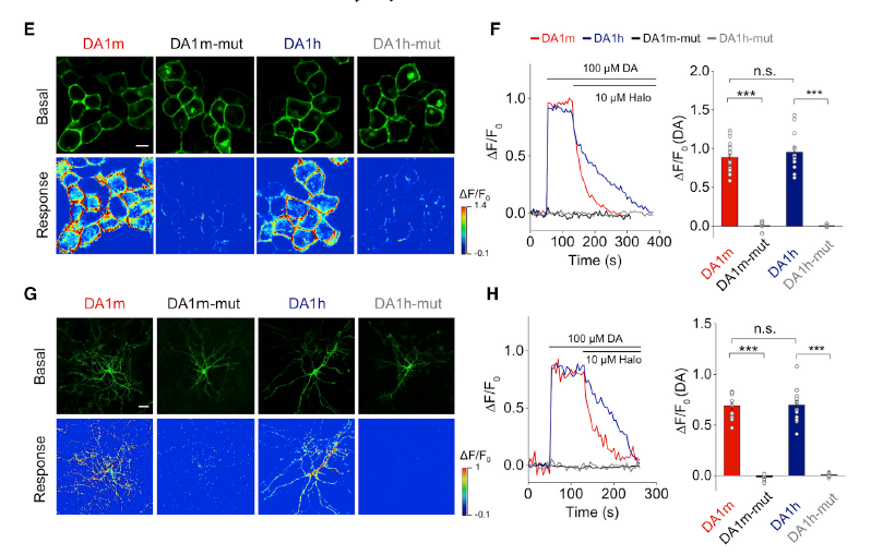 图11 GRABDA sensors表达在细胞和神经元中(Yulong Li’s lab., cell, 2018)