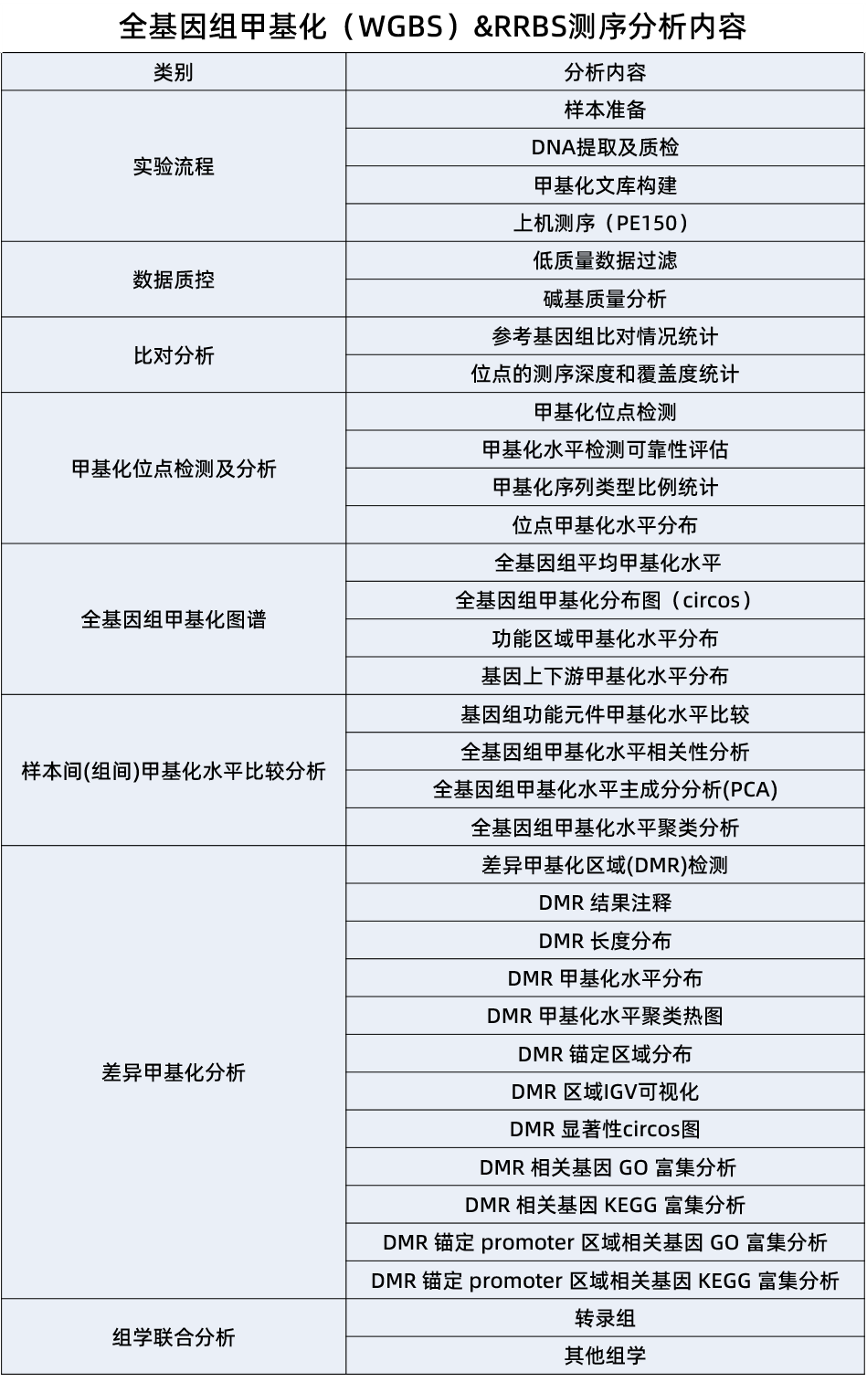 全基因组甲基化测序(Whole Genome Bisulfite Sequencing,WGBS)是将重亚硫酸盐(Bisulfite)处理方法和Illumina高通量测序相结合,对有参考基因组信息的物种进行全基因组范围内的甲基化水平检测。WGBS可以精确到单碱基分辨率,精确分析每一个C碱基的甲基化状态,可以达到全基因组覆盖, 是研究甲基化水平的“金标准”。WGBS满足全基因组甲基化图谱、疾病关联分析、基因调控分析、疾病的甲基化标志物筛选等探索性课题研究。