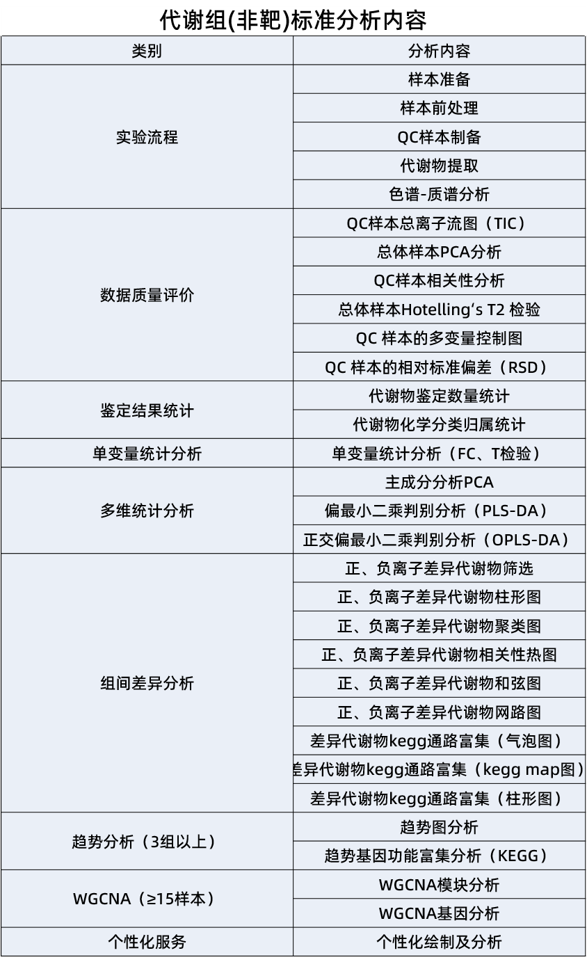 非靶向代谢组(Untargeted Metabolomics)是指采用LC-MS/ GC-MS,无偏向性的检测细胞、组织、器官或者生物体内受到刺激或扰动前后所有小分子代谢物的动态变化,获得样品中各个代谢物的相对定量数据,并通过生信分析筛选差异代谢物及对差异代谢物进行通路分析,揭示其变化的作用机制。