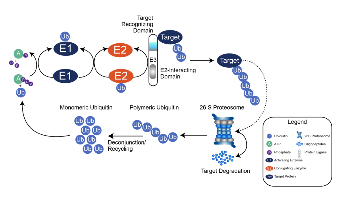 泛素化蛋白组(Ubiquitinome) 指细胞中所有被泛素(Ubiquitin, Ub)修饰的蛋白质及其修饰位点的集合。泛素化是一种高度动态的翻译后修饰,通过三步酶促反应(E1-E2-E3)将泛素分子(76 个氨基酸,8.5kDa)连接到靶蛋白的赖氨酸(Lys)残基 ε- 氨基上(少数情况涉及丝氨酸、半胱氨酸等)。