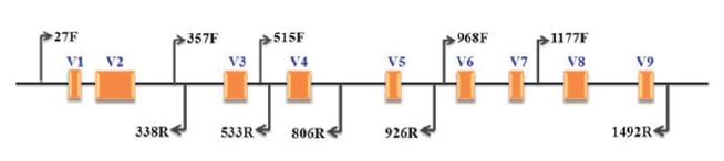 16S rRNA基因普遍存在于细菌和古细菌中,具有多个拷贝数,全长1500 bp左右,其结构由9个可变区(variable region)和10个保守区(conserved region)交替组成。基于16S rRNA扩增子测序(如V3-V4)的微生物群落多样性分析方法已被广泛应用,通过分析微生物群落中物种分布、群落特征和功能,寻找不同样本或组间的差异菌群,挖掘样本表型与微生物群落特征的关联,进而阐明微生物与环境间的相互作用关系。