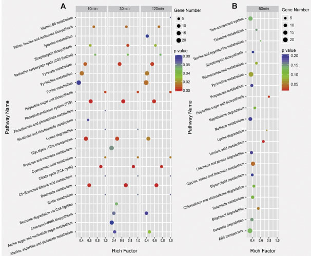 通过转录组测序和iTRAQ蛋白质组定量分析后发现,与空白对照相比,添加ox胆汁溶液培养的LI01菌株中检测到591个差异表达的基因和347个差异表达的蛋白质。利用GO和KEGG分析,发现差异表达的基因主要参与胁迫应答,糖酵解和转运以及诸如碳水化合物代谢和氨基酸生物合成等途径;差异表达的蛋白质主要参与DNA修饰、基因 表达和细胞组分降解和代谢过程的调节。