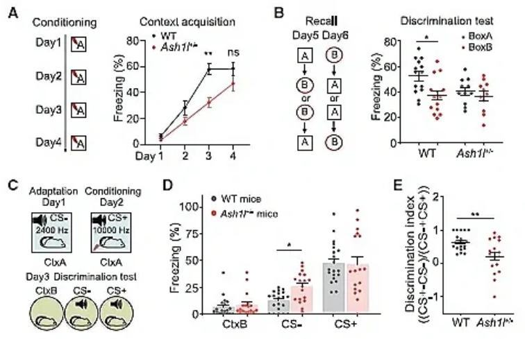 Ash1l突变小鼠存在辨别能力缺陷