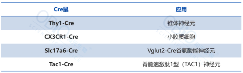 Cre鼠配合重组AAV病毒可在特定脑区实现细胞特异性标记、光遗传学和化学遗传学操纵、在体钙成像记录,或者组织特异性的基因编辑。