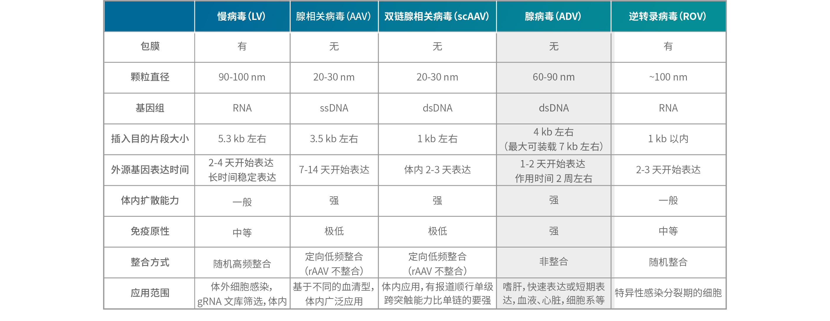 表一 不同病毒载体比较
