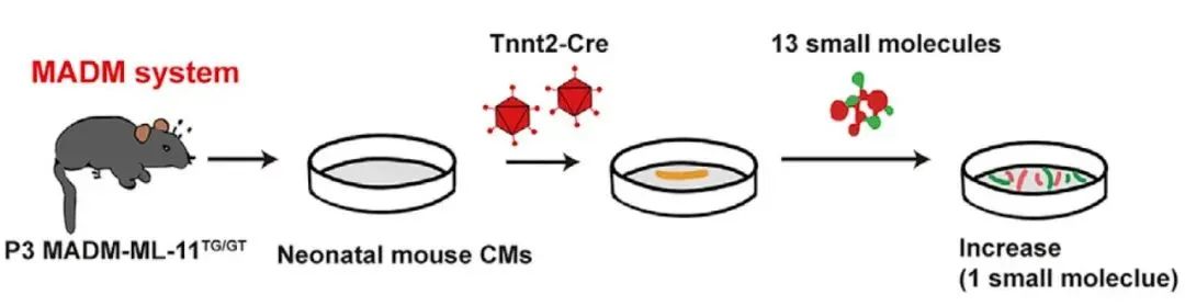 借助心肌细胞特异性启动子Tnnt2驱动cre酶的表达,配合MADM-ML-11TG/GT鼠追踪心肌细胞细胞分裂的状态。()。