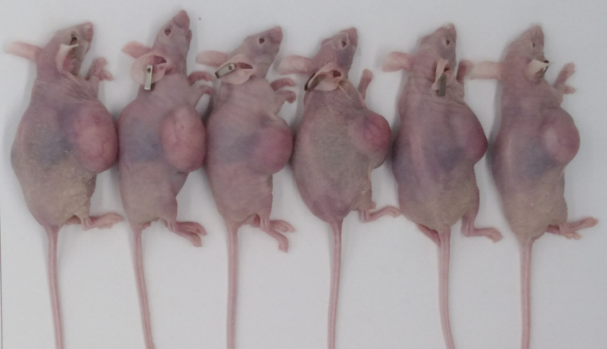 该模型操作简单方便,可以直观观察肿瘤的生长,方便检测动物体重、肿瘤生长曲线、肿瘤重量等重要数据;